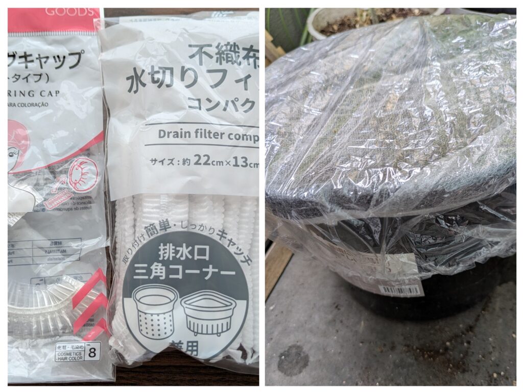 不織布の一部がうっすら破れていたので更にもう1枚厳重に被せまして…。