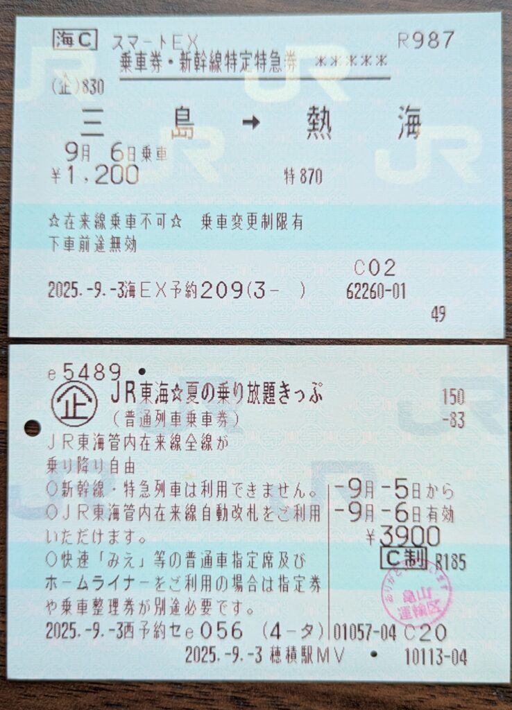 三島〜熱海間で1200円!!で新幹線切符購入条件をクリアし、乗り放題切符もゲットしました!