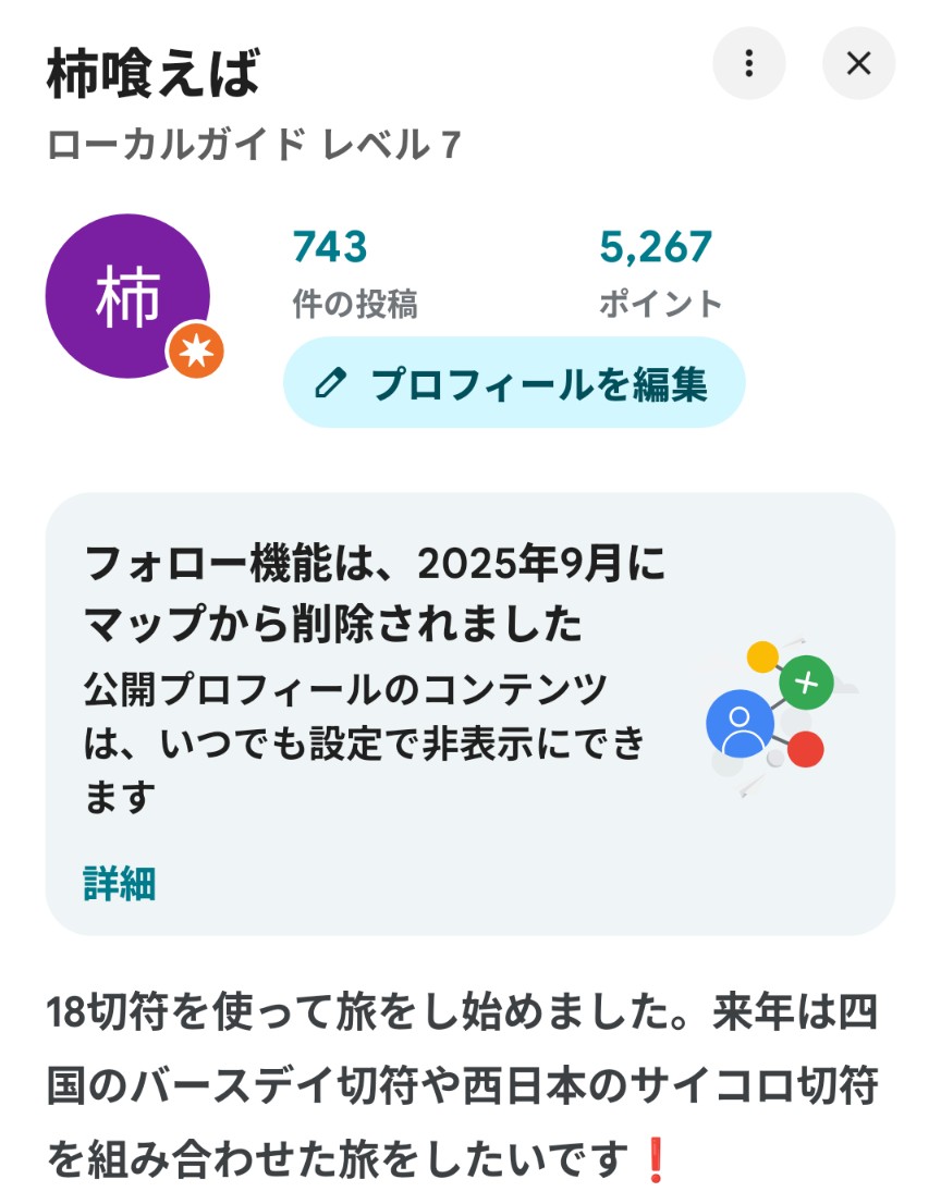 私はブログの更新もごゆっくりなくせにGoogleMapのローカルガイドも登録してまして。